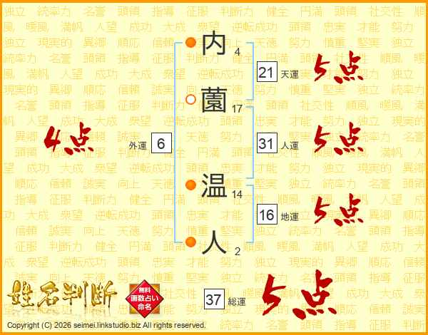 内薗温人さんの総運は37画の5点!