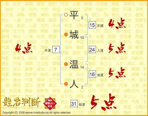 平城温人さんの総運は31画の5点!