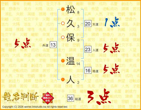 松久保温人さんの人運は23画の5点!