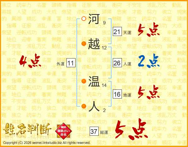 河越温人さんの総運は37画の5点!