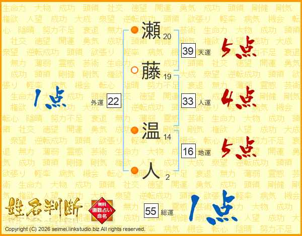 瀬藤温人さんの人運は33画の4点!