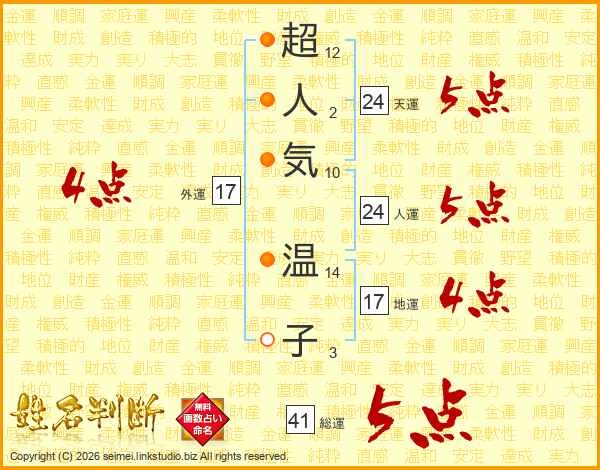超人気温子さんの総運は41画の5点!