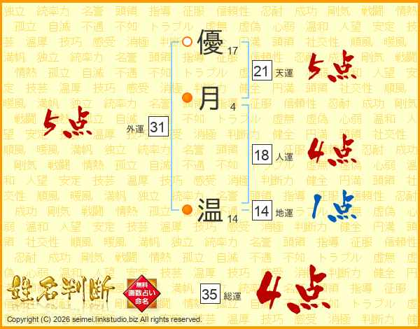 優月温さんの総運は35画の4点!