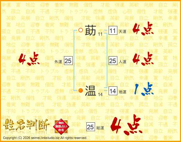 莇温さんの総運は25画の4点!