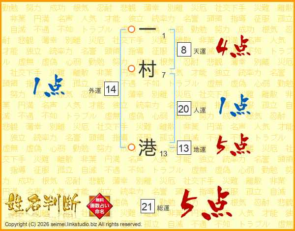 一村港さんの地運は13画の5点!