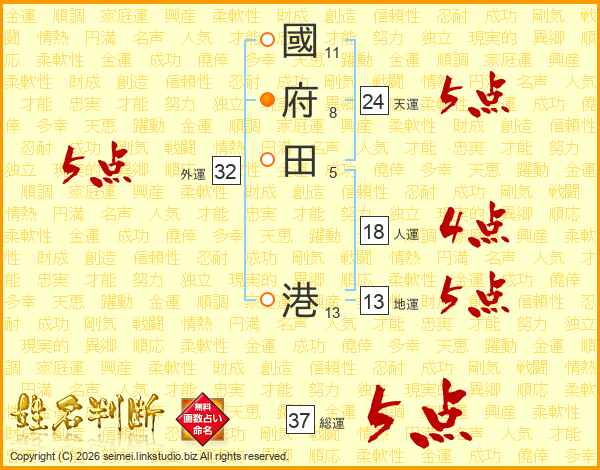 國府田港さんの天運は24画の5点!