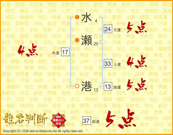 水瀬港さんの天運は24画の5点!