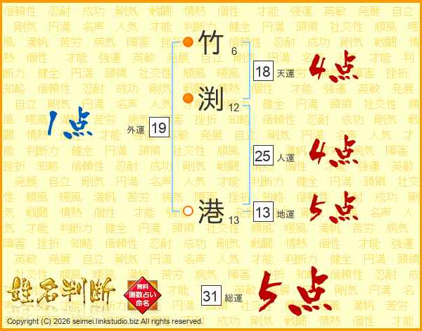 竹渕港さんの人運は25画の4点!
