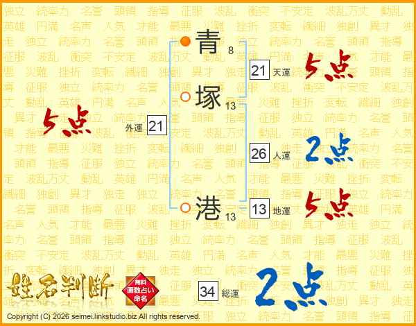 青塚港さんの天運は21画の5点!