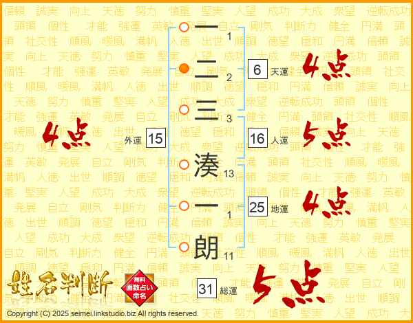 一(1画)二(2画)三(3画) 湊(13画)一(1画)朗(11画)