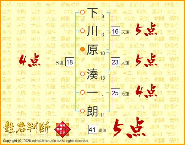 下川原湊一朗さんの地運は25画の4点!