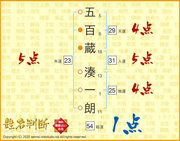 五百蔵湊一朗さんの総運は54画の1点!