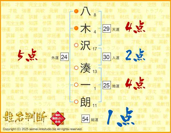 八木沢湊一朗さんの天運は29画の4点!