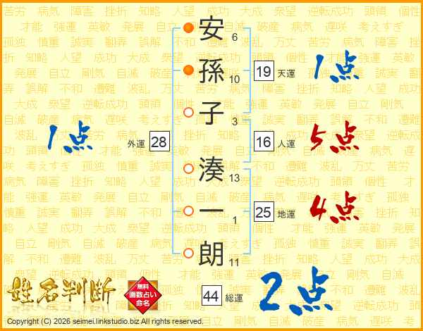 安孫子湊一朗さんの総運は44画の2点!