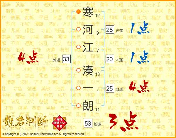 寒河江湊一朗さんの総運は53画の3点!