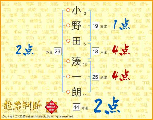 小野田湊一朗さんの地運は25画の4点!