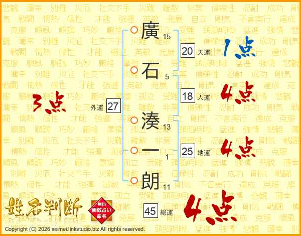 廣石湊一朗さんの総運は45画の4点!
