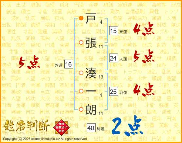 戸張湊一朗さんの人運は24画の5点!