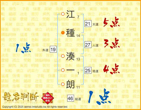 江種湊一朗さんの地運は25画の4点!
