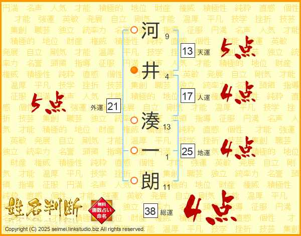 河井湊一朗さんの総運は38画の4点!