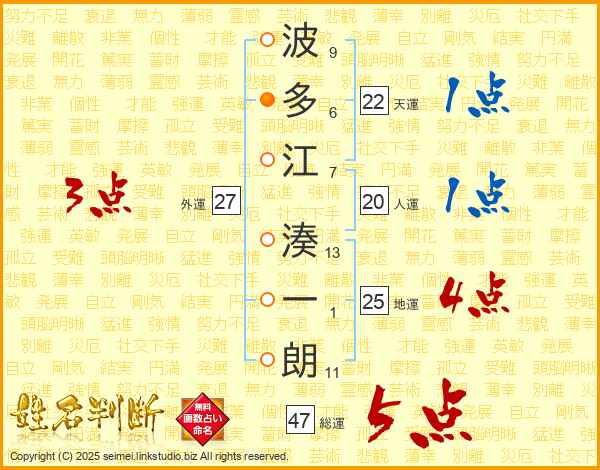 波多江湊一朗さんの総運は47画の5点!