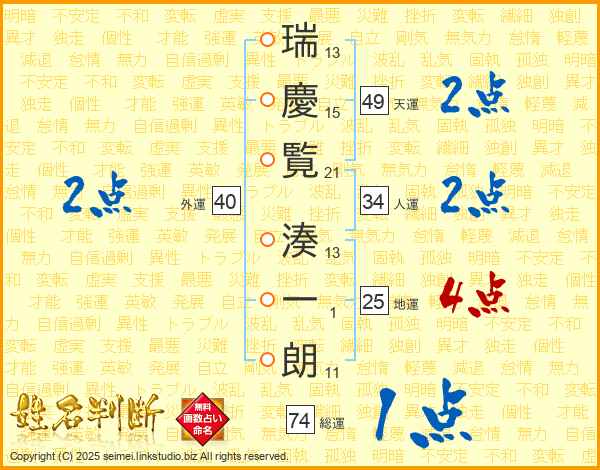 瑞慶覧湊一朗さんの地運は25画の4点!