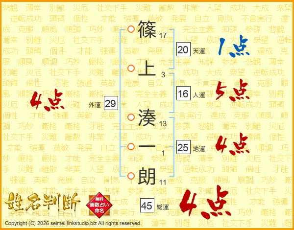 篠上湊一朗さんの総運は45画の4点!
