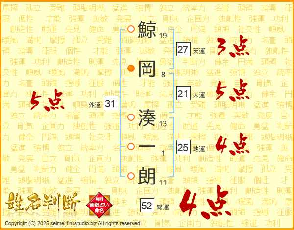 鯨岡湊一朗さんの総運は52画の4点!