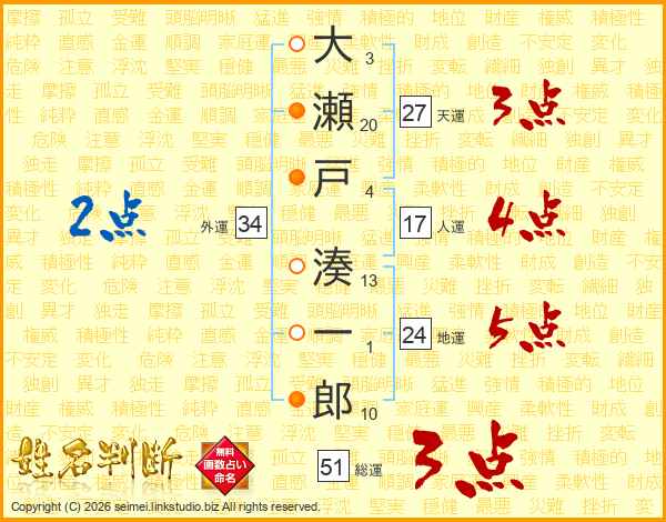 大瀬戸湊一郎さんの天運は27画の3点!