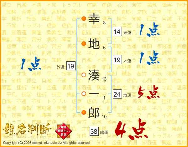 幸(8画)地(6画) 湊(13画)一(1画)郎(10画)