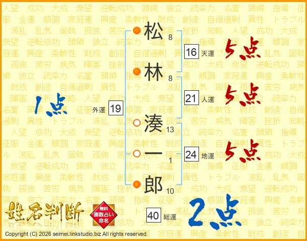 松(8画)林(8画) 湊(13画)一(1画)郎(10画)