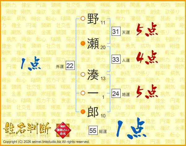 野瀬湊一郎さんの天運は31画の5点!