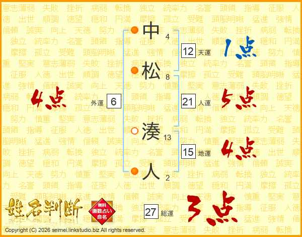 中松湊人さんの総運は27画の3点!