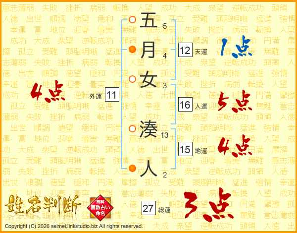 五月女湊人さんの総運は27画の3点!