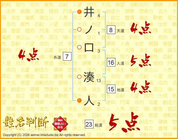 井ノ口湊人さんの総運は23画の5点!