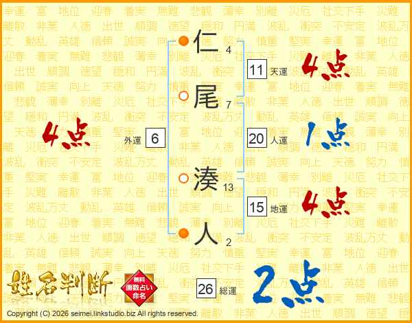 仁尾湊人さんの総運は26画の2点!