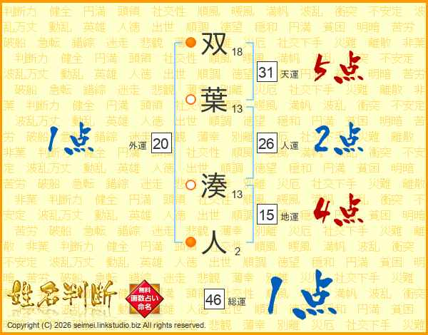 双葉湊人さんの総運は46画の1点!