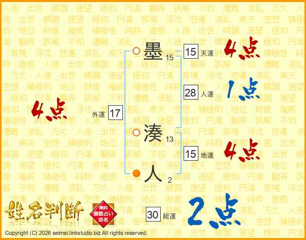 墨湊人さんの総運は30画の2点!