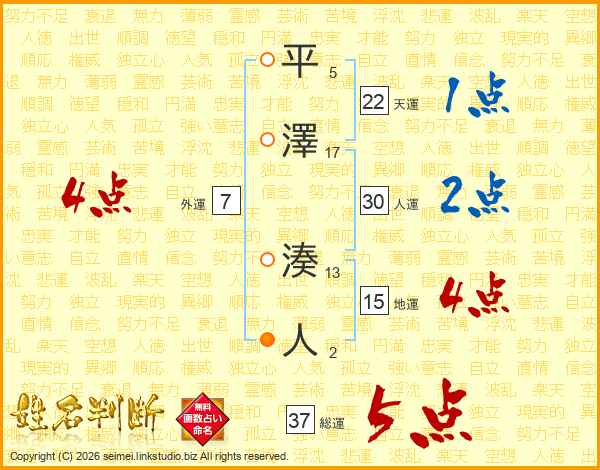 平澤湊人さんの総運は37画の5点!