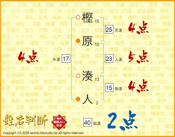 樫原湊人さんの総運は40画の2点!