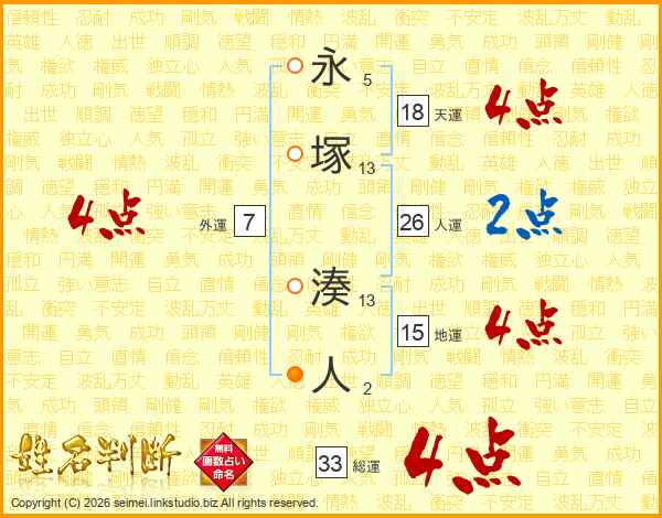 永塚湊人さんの総運は33画の4点!