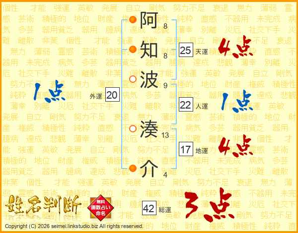 阿知波湊介さんの地運は17画の4点!