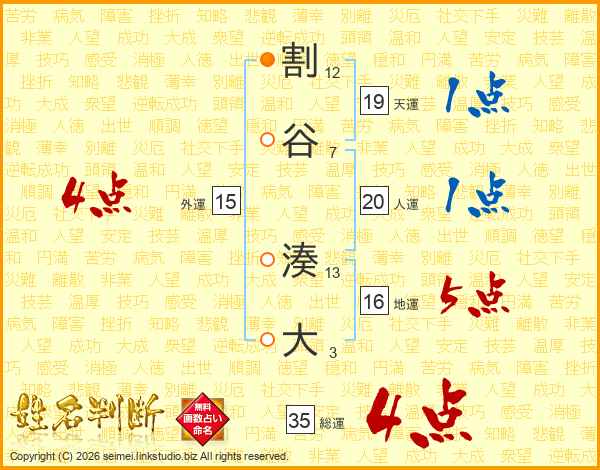 割谷湊大さんの総運は35画の4点!