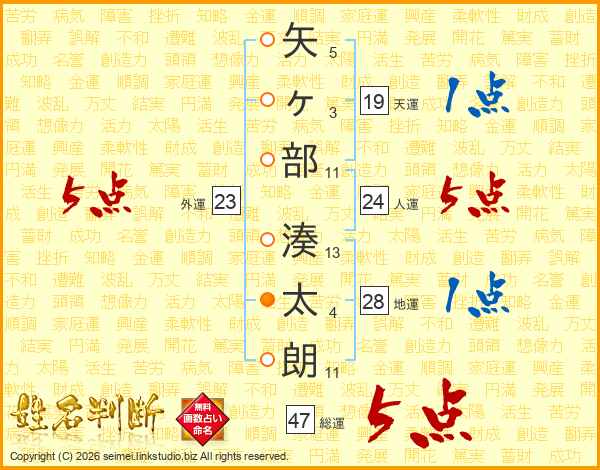 矢ヶ部湊太朗さんの総運は47画の5点!