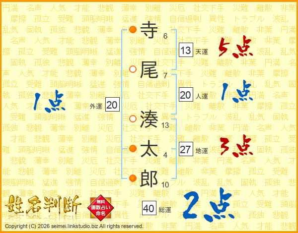 寺(6画)尾(7画) 湊(13画)太(4画)郎(10画)