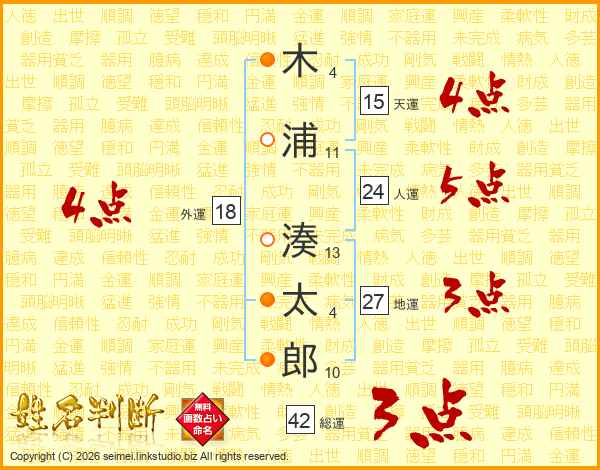 木浦湊太郎さんの天運は15画の4点!