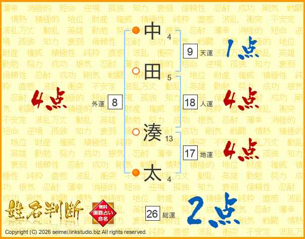 中田湊太さんの地運は17画の4点!