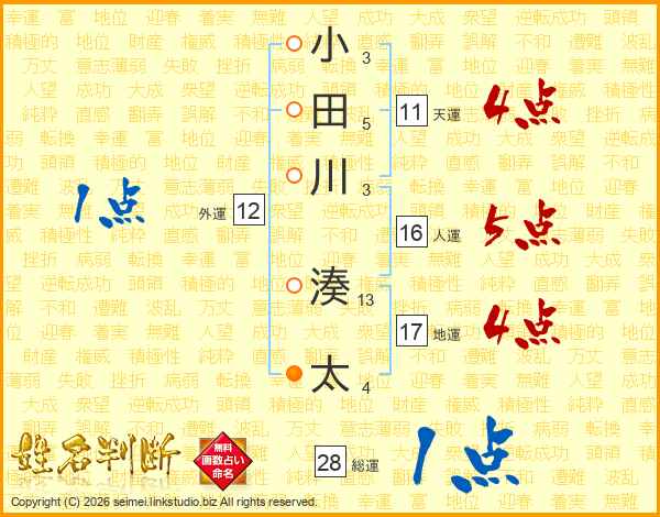 小田川湊太さんの天運は11画の4点!