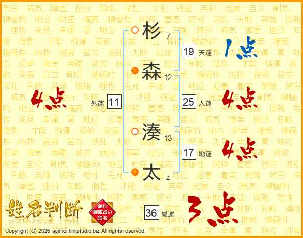 杉森湊太さんの人運は25画の4点!