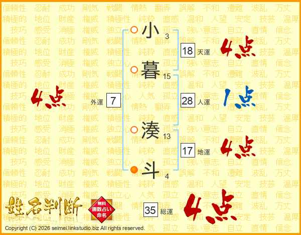 小(3画)暮(15画) 湊(13画)斗(4画)